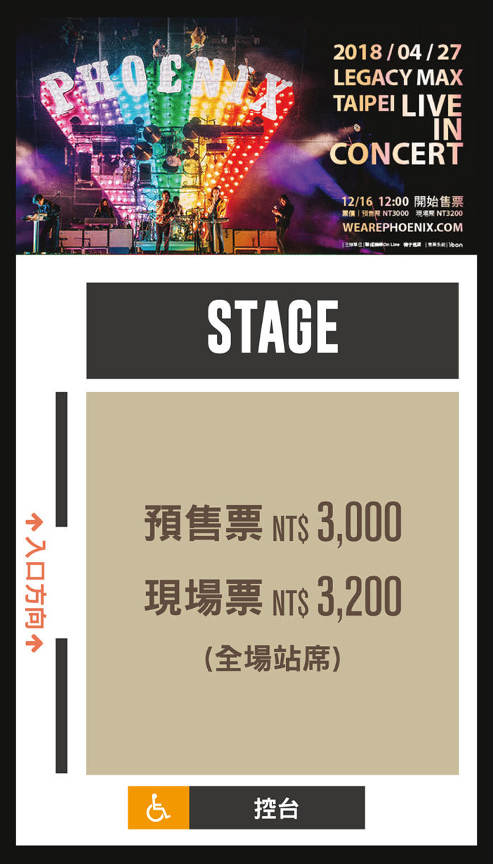 | 演出票價: | 現場票: NT 3,200 / 預售票: NT 3,000 |