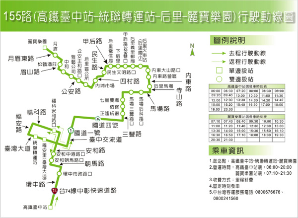 155(高鐵台中站 – 統聯轉運站 – 麗寶樂園),第三站即可在Legacy Taichung對面下車(站名:安和福玄路口)。