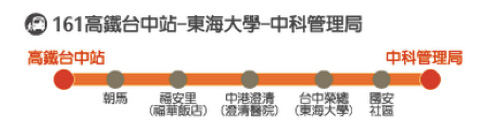 161(高鐵台中站 – 東海大學 – 中科管理局),在第二站:福安里下車(台灣大道/安和路口)下車,距離Legacy只有300公尺,步行前往只需3.5分鐘。